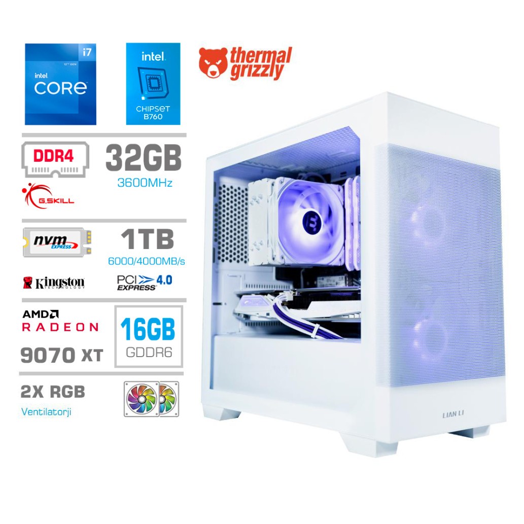 | Grafična kartica: | AMD RX9070 XT PowerColor Hellhound Spectral Bela 16GB GDDR6 |